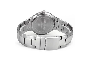 Классические кварцевые часы, будут уместны как в деловой, так и в свободной обстановке. Стекло: минеральное с сапфировым покрытием. Корпус и браслет стальной. Календарь: число, день недели, месяц, фазы Луны. Водозащита: 50WR.