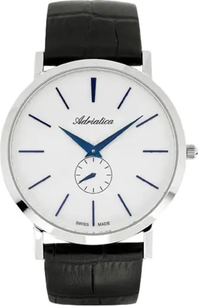 Мужские наручные кварцевые часы круглой формы, секундная стрелка вынесена на отдельный циферблат, вместо цифр риски, на кожаном ремешке. Корпус из высококачественной нержавеющей стали. Минеральное стекло устойчивое к возникновению царапин. Водозащита: 50WR.