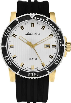 Спортивный характер часов и массивный корпус — максимум качества и комфорта. Механизм кварцевый. Корпус стальной с частичным PVD покрытием. Браслет силиконовый. Водозащита 100WR. Стекло минеральное закаленное.