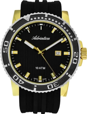 Спортивный характер часов и массивный корпус — максимум качества и комфорта. Механизм кварцевый. Корпус стальной с частичным PVD покрытием. Браслет силиконовый. Водозащита 100WR. Стекло минеральное закаленное.