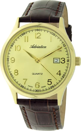 Часы Adriatica Classic — это идеально спроектированные часы, которые подойдут к любому элегантному образу. Часы работают благодаря кварцевому механизму, питающемуся от батарейки. Корпус из цельного золота выполнен из нержавеющей стали. Прочный коричневый кожаный ремешок идеально смотрится на запястье. Золотистый циферблат защищен от ударов и царапин закаленным минеральным стеклом. Водонепроницаемость до 50 метров защищает часы от сильных брызг воды.
