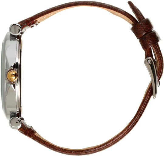 Наручные женские часы выполнены в классическом стиле. Корпус из нержавеющей стали с PVD-покрытием цвета золота. Стрелки покрыты PVD-составом. Минеральное стекло устойчивое к возникновению царапин.Кожаный ремешок .Простая ремешковая застежка.