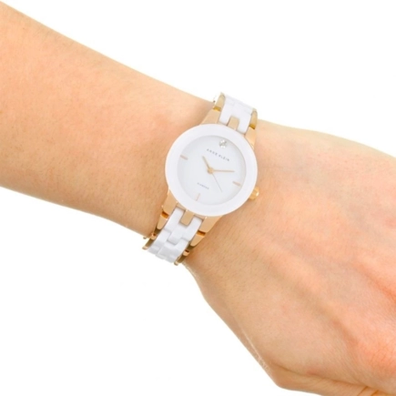 Женские часы, которые наверняка оценит каждый любитель идеально сделанных вещей. Выделяются изысканностью, элегантностью и полным соответствием образу жизни современных и уверенных в себе женщин. Классический круглый циферблат белого цвета, дизайн с тремя золотистыми тонкими стрелками, часовыми метками и бриллиантом в положении 12 часов придают часам особый шарм. Стальной корпус и керамический браслет. Регулируемый браслет с центральными звеньями, ювелирная застежка и удлинитель. Кварцевый механизм изготовлен в Японии. Стекло минеральное, водонепроницаемость 30WR выдерживает брызги или кратковременное погружение в воду.