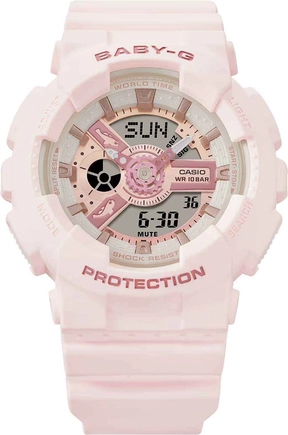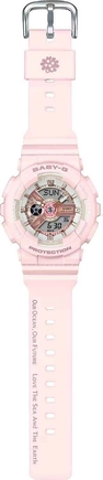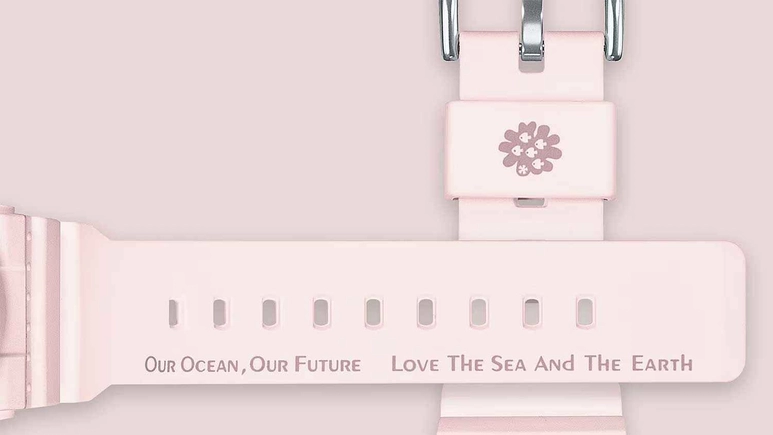 Яркая расцветка этих часов отлично подойдет для модных девушек, ведущих активный образ жизни. Baby-G x Aqua Planet. Модель выпущена в поддержку деятельности организации Aqua Planet, которая занимается восстановлением коралловых рифов. Корпус и ремешок выполнены из биопластика, который изготавливается из возобновляемых органических ресурсов. Противоударный корпус защищает механизм от ударов и вибрации. Циферблат подсвечивается светодиодом. В часах есть функция послесвечения - подсветка продолжает работать несколько секунд после того как кнопка подсветки была отпущена. Цвет подсветки: оранжевый. Необритовое светонакопительное покрытие обеспечивает длительное послесвечение в темноте даже после кратковременного нахождения на свету. 12-ти и 24-х часовой формат времени. Секундомер с точностью показаний 1/100с и временем измерения 24ч. SPLIT-хронограф. Таймер обратного отсчета от 1мин до 24ч. Мировое время – 48 городов (29 часовых поясов), всемирное координированное время (UTC). Функции включения/отключения летнего времени, включения/отключения звука. Циферблат украшен силуэтами коралловой рыбки-бычка (Gobiodon quinquestrigatus). Батарейка рассчитана на 2 года. Стальная задняя крышка крепится на 4-х винтах и украшена гравировкой. Ремешок украшен надписями «Our Ocean, Our Future» (Наш океан, наше будущее) и «Love The Sea And The Earth» (Люблю море и землю). Классическая застежка.