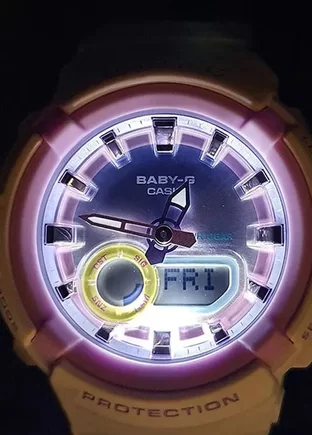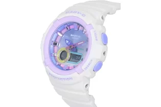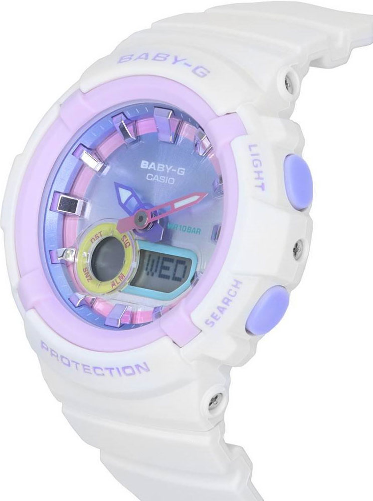 Противоударные кварцевые женские наручные часы Casio BGA-280PM-7A коллекции Baby-G с двойной индикацией времени. Противоударный корпус защищает механизм от ударов и вибрации. Флуоресцентное напыление на стрелках и дисплее часов позволяет отчетливее видеть каждую цифру.Циферблат подсвечивается ярким светодиодом. Послесвечение. Цвет подсветки: белый. Необритовое светонакопительное покрытие обеспечивает длительное послесвечение в темноте даже после кратковременного нахождения на свету. 12-ти и 24-х часовой формат времени. Секундомер с точностью показаний 1с и временем измерения 1ч. SPLIT-хронограф. Таймер обратного отсчета от 1мин до 1ч с автоповтором.5 будильников, один с функцией Snooze, ежечасный сигнал. Мировое время – 27 городов (29 часовых поясов), всемирное координированное время (UTC) Автоматический переход на зимнее и летнее время, Батарея рассчитана на 3 года. Задняя крышка крепится на 4-х винтах. Ремешок с классической застежкой.