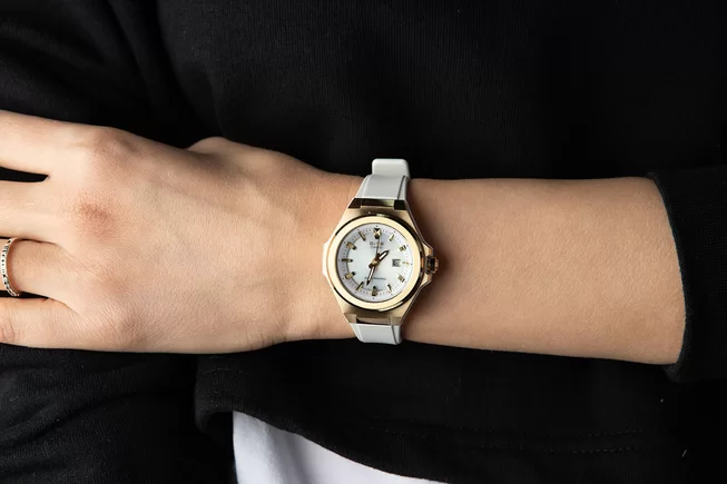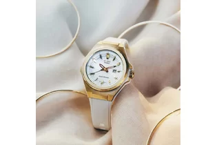 Минималистичный циферблат и отсутствие цифровых окошек подчеркивают изысканность серии. Завинчивающаяся заводная головка с защитой. Ремешок из полимерного материала. Стекло минеральное. Водозащита 100WR.