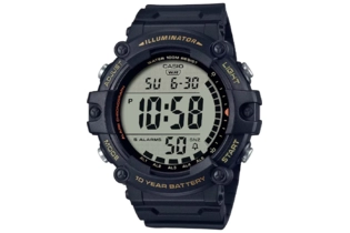 Циферблат подсвечивается светодиодом. Послесвечение. Цвет подсветки: оранжевый. Второй часовой пояс. 12-ти и 24-х часовой формат времени. Секундомер с точностью показаний 1/100с и временем измерения 24ч. SPLIT-хронограф. Таймер обратного отсчета от 1мин до 24ч с автоповтором. Батарея рассчитана на 10 лет.