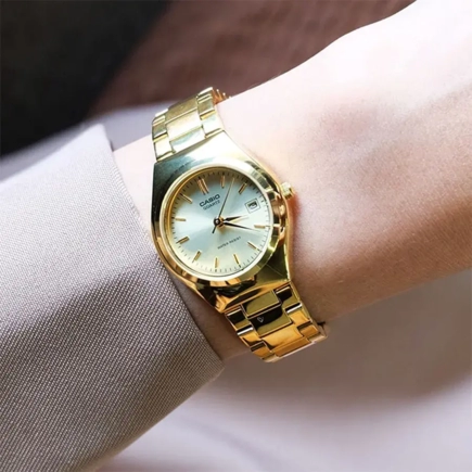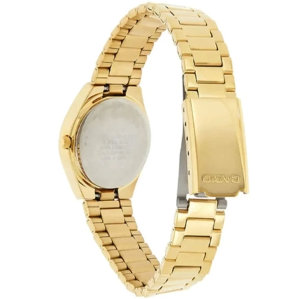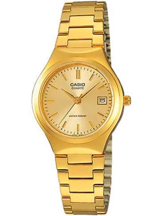 Часы Casio (Касио) отличный аксессуар в стиле casual. Циферблат с метками в виде штрихов. Браслет стальной с IP покрытием и раскладывающейся застежкой. Стекло минеральное. Водозащита 30WR.