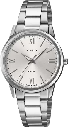 Часы Casio (Касио) отличный аксессуар в стиле casual. Классический сдержанный дизайн, круглый стальной корпус. Циферблат с метками в виде штрихов. Стрелки покрыты люминесцентным напылением (светятся в темноте). Браслет стальной с раскладывающейся застежкой. Стекло минеральное. Водозащита 50WR.