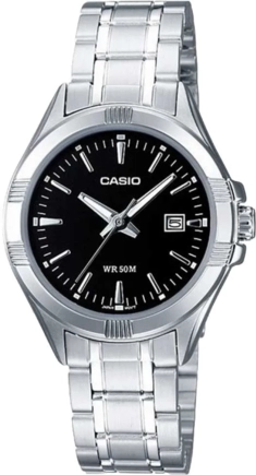Часы Casio (Касио) отличный аксессуар в стиле casual. Классический сдержанный дизайн, круглый стальной корпус. На циферблате присутствует индикация текущей даты. Стрелки часов покрыты безопасным люминесцентным покрытием, которое светится в темноте. Браслет стальной с раскладывающейся застежкой. Стекло минеральное. Заводная головка с защитой. Водозащита 50WR.