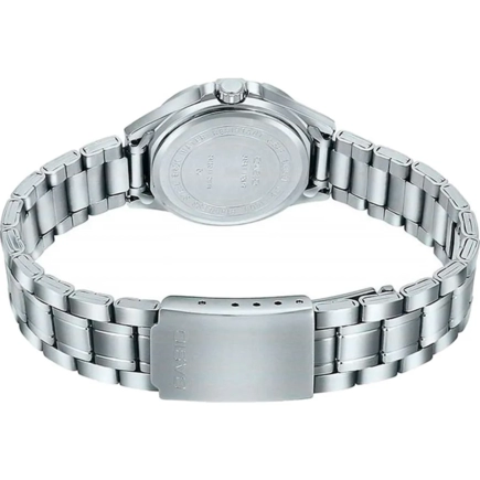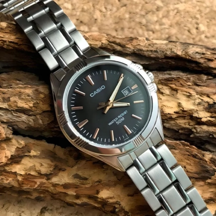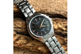 Часы Casio (Касио) отличный аксессуар в стиле casual. Классический сдержанный дизайн, круглый стальной корпус. На циферблате присутствует индикация текущей даты. Стрелки часов покрыты безопасным люминесцентным покрытием, которое светится в темноте. Браслет стальной с раскладывающейся застежкой. Стекло минеральное. Заводная головка с защитой. Водозащита 50WR.