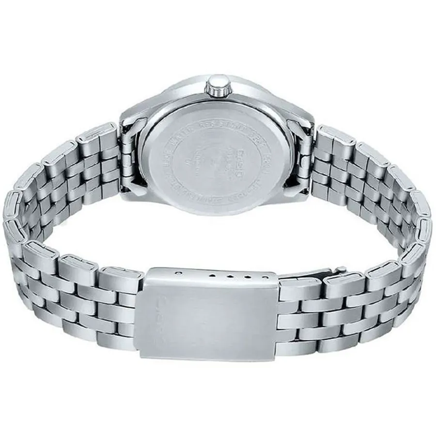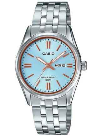 Часы Casio (Касио) отличный аксессуар в стиле casual. Классический сдержанный дизайн, круглый стальной корпус. Стрелки часов покрыты безопасным люминесцентным покрытием, которое светится в темноте. На циферблате присутствует индикация текущей даты и дня недели.