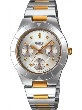 Часы Casio (Касио) отличный аксессуар в стиле casual. Классический сдержанный дизайн, круглый стальной корпус. Дисплей даты и дня недели. Календарь. На браслет частично нанесено стойкое PVD покрытие. Браслет стальной с раскладывающейся застежкой. Стекло минеральное. Водозащита 50WR.