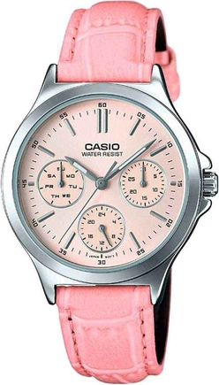 Часы Casio (Касио) отличный аксессуар, который дополнит Ваш деловой образ в повседневной жизни.Модные и женственные часики станут идеальным вариантом для повседневного общения со временем. Collection. Женские часы. 12-ти и 24-х часовой формат времени, число и день недели вынесены на отдельные циферблаты. Метки в виде штрихов. Заводная головка с защитой. Браслет с тройной раскладывающейся застежкой.