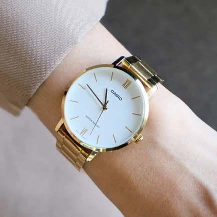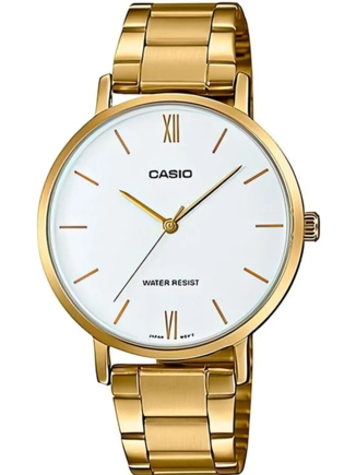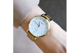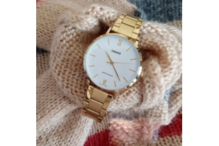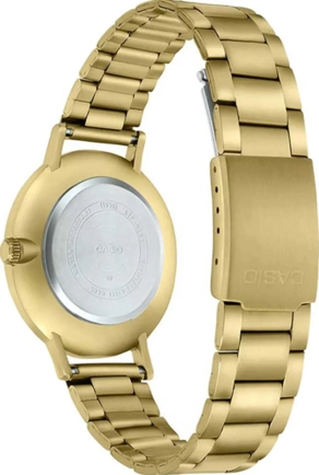 Часы Casio (Касио) отличный аксессуар, который дополнит Ваш деловой образ в повседневной жизни. Утонченность этих женских часов завершит ваш обворожительный и женственный образ. Standard. Женские часы с круглым корпусом. Циферблат выполнен по технологии Sunray (солнечные лучи). Метки в виде штрихов и двух римских цифр. На корпус и браслет нанесено стойкое IP покрытие. Браслет с тройной раскладывающейся застежкой.