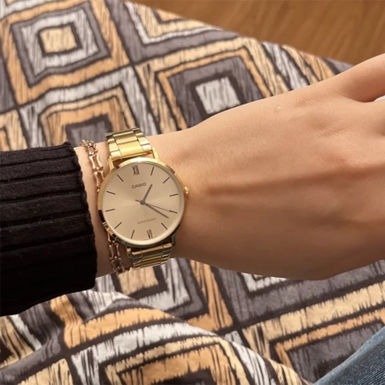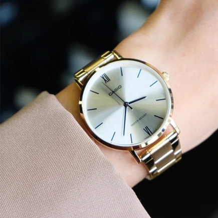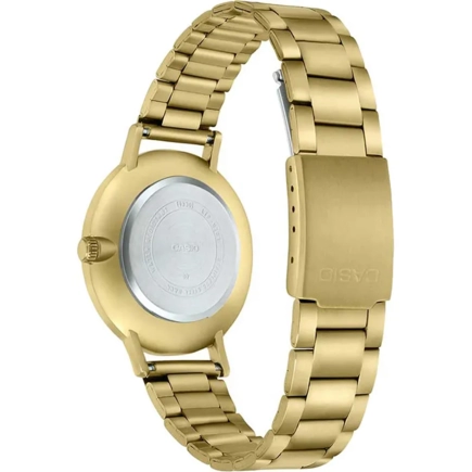 Часы Casio (Касио) отличный аксессуар, который дополнит Ваш деловой образ в повседневной жизни. Утонченность этих женских часов завершит ваш обворожительный и женственный образ. Standard. Женские часы с круглым корпусом. Циферблат выполнен по технологии Sunray (солнечные лучи). Метки в виде штрихов и двух римских цифр. На корпус и браслет нанесено стойкое IP покрытие. Браслет с тройной раскладывающейся застежкой.