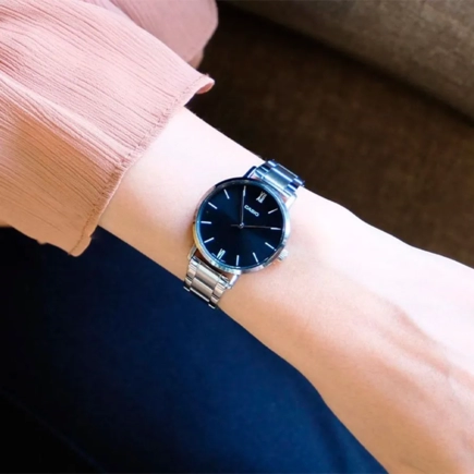 Часы Casio (Касио) отличный аксессуар, который дополнит Ваш деловой образ в повседневной жизни. Утонченность этих женских часов завершит ваш обворожительный и женственный образ. Женские часы с круглым корпусом. Метки в виде штрихов и двух римских цифр. Браслет с тройной раскладывающейся застежкой, расстегиваемой одним касанием.
