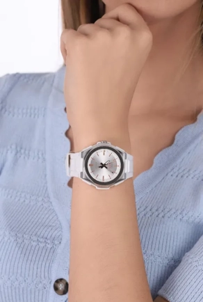 Часы Casio (Касио) Прекрасный повседневный аксессуар со спортивными чертами. Женские часы. Циферблат выполнен по технологии Sunray (солнечные лучи). Метки в виде штрихов.