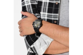 На данной модели отображается дата. Секундомер может отсчитывать до 29 минут 59 секунд. Стрелки и метки покрыты люминесцентным напылением (светятся в темноте). Заводная головка с защитой. Водозащита 100WR.