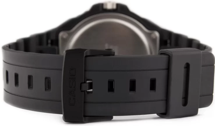 Стальная задняя крышка крепится на 4-х винтах. Заводная головка с защитой. Ремешок из полимерного материала с классической застежкой. Водозащита 100WR.