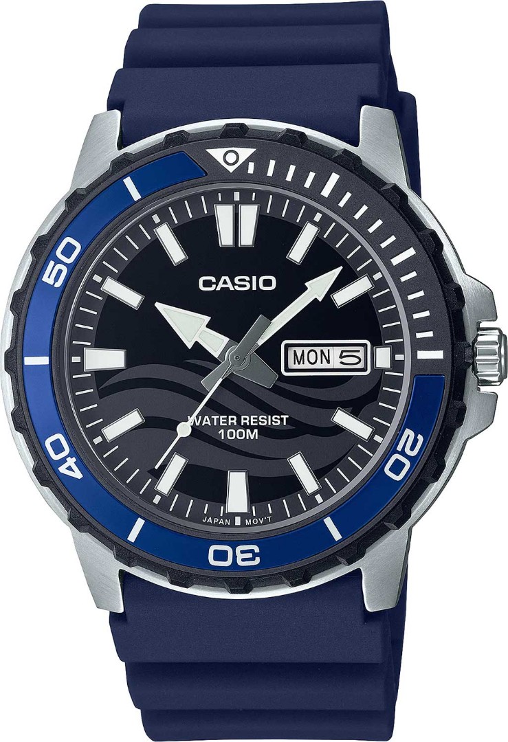 Часы Casio (Касио) Мужские кварцевые наручные часы. Безель вращается в одном направлении. На циферблате отображается день недели и текущая дата. Стрелки и метки покрыты люминесцентным напылением (светятся в темноте).