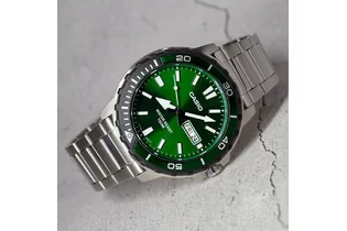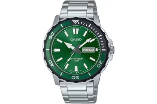 Часы Casio (Касио) Мужские кварцевые наручные часы. Безель вращается в одном направлении. На циферблате отображается день недели и текущая дата. Стрелки и метки покрыты люминесцентным напылением (светятся в темноте).