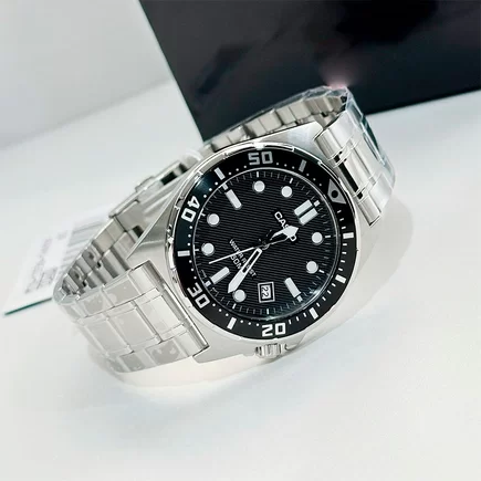Заводная головка с защитой. Минеральное стекло устойчивое к возникновению царапин. Стальной браслет с раскладывающейся застежкой, расстегиваемой одним касанием. Водозащита 50WR.