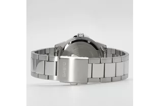 Заводная головка с защитой. Минеральное стекло устойчивое к возникновению царапин. Стальной браслет с раскладывающейся застежкой, расстегиваемой одним касанием. Водозащита 100WR.