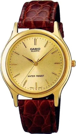 Часы Casio (Касио) в стальном корпусе, отличный аксессуар в стиле casual, на коричневом кожаном ремешке. Стекло минеральное. Водозащита 30WR.