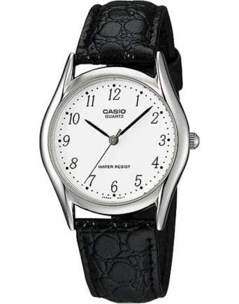 Часы Casio (Касио) в стальном корпусе, отличный аксессуар в стиле casual, на черном кожаном ремешке. Стекло минеральное. Водозащита 30WR.