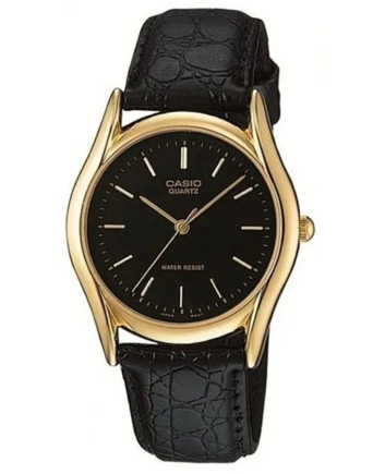 Часы Casio (Касио) в стальном корпусе, отличный аксессуар в стиле casual, на черном кожаном ремешке. Стекло минеральное. Водозащита 30WR.