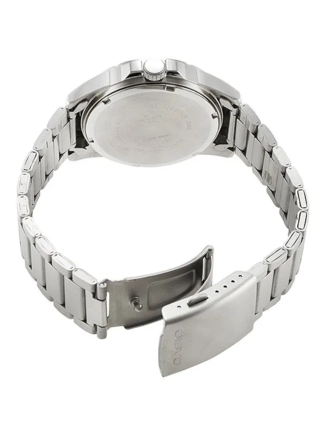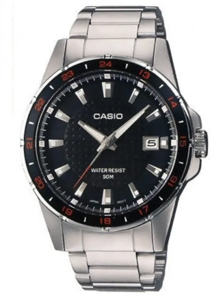 Часы Casio (Касио) классический характер, круглый корпус. Эти часы созданы для мужчин, которые ценят комфорт и практичность. На данной модели отображается дата. На стрелки и метки нанесен накапливающий свет флуоресцирующий материал, за счет которого обеспечивается свечение стрелок в темноте. Раскладывающаяся застежка, расстегиваемая одним касанием. Водозащита 50WR.