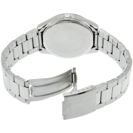 Часы Casio (Касио) классический характер, круглый корпус. Эти часы созданы для мужчин, которые ценят комфорт и практичность. На данной модели отображается дата. На стрелки нанесен накапливающий свет флуоресцирующий материал, за счет которого обеспечивается свечение стрелок в темноте. Стальной браслет. Раскладывающаяся застежка, расстегиваемая одним касанием. Водозащита 50WR.