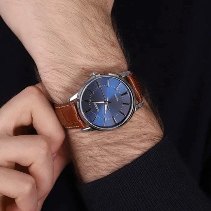 Часы Casio (Касио) классический характер, круглый корпус. Эти часы созданы для мужчин, которые ценят комфорт и практичность. На стрелки нанесен накапливающий свет флуоресцирующий материал, за счет которого обеспечивается свечение стрелок в темноте. Стекло минеральное, устойчивое к повреждениям и царапинам. Корпус из нерж.стали. Ремешок из натуральной кожи. Классическая застежка из нержавеющей стали. Водозащита 50WR.