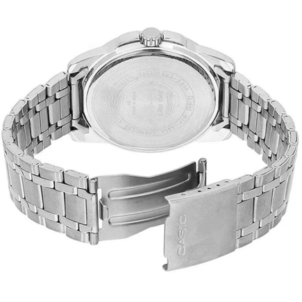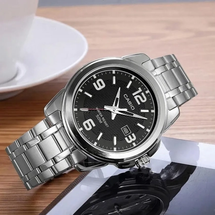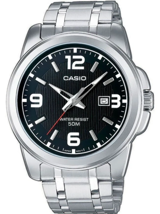 Часы Casio (Касио) классический характер, круглый корпус. Эти часы созданы для мужчин, которые ценят комфорт и практичность. Циферблат с метками в виде штрихов и арабских цифр. На данной модели отображается текущая дата. На стрелки нанесен накапливающий свет флуоресцирующий материал, за счет которого обеспечивается свечение стрелок в темноте. Стекло минеральное, устойчивое к повреждениям и царапинам. Корпус и браслет из нерж.стали. Раскладывающаяся застежка, расстегиваемая одним касанием. Водозащита 50WR.