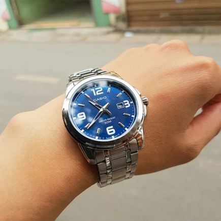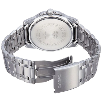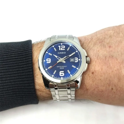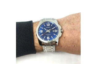 Часы Casio (Касио) классический характер, круглый корпус. Эти часы созданы для мужчин, которые ценят комфорт и практичность. Циферблат с метками в виде штрихов и арабских цифр. На данной модели отображается текущая дата. На стрелки нанесен накапливающий свет флуоресцирующий материал, за счет которого обеспечивается свечение стрелок в темноте. Стекло минеральное, устойчивое к повреждениям и царапинам. Корпус и браслет из нерж.стали. Раскладывающаяся застежка, расстегиваемая одним касанием. Водозащита 50WR.