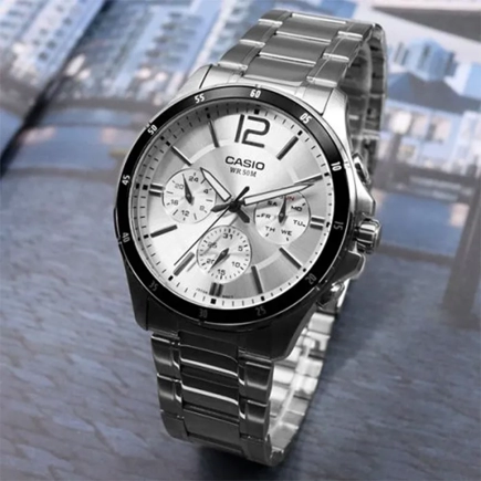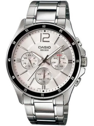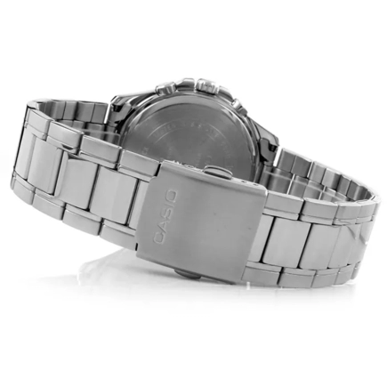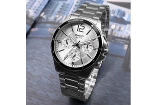 Часы Casio (Касио) классический характер, круглый корпус. Эти часы созданы для мужчин, которые ценят комфорт и практичность. 12-ти и 24-х часовой формат времени, число и день недели вынесены на отдельные циферблаты. Метки в виде штрихов и арабской цифры 12. Заводная головка с защитой. На стрелки нанесен накапливающий свет флуоресцирующий материал, за счет которого обеспечивается свечение стрелок в темноте. Стекло минеральное, устойчивое к повреждениям и царапинам. Корпус и браслет из нерж.стали. Браслет с тройной раскладывающейся застежкой, расстегиваемой одним касанием. Водозащита 50WR.