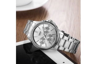 Часы Casio (Касио) классический характер, круглый корпус. Эти часы созданы для мужчин, которые ценят комфорт и практичность. 12-ти и 24-х часовой формат времени, число и день недели вынесены на отдельные циферблаты. Метки в виде штрихов и арабской цифры 12. Заводная головка с защитой. На стрелки нанесен накапливающий свет флуоресцирующий материал, за счет которого обеспечивается свечение стрелок в темноте. Стекло минеральное, устойчивое к повреждениям и царапинам. Корпус и браслет из нерж.стали. Браслет с тройной раскладывающейся застежкой, расстегиваемой одним касанием. Водозащита 50WR.