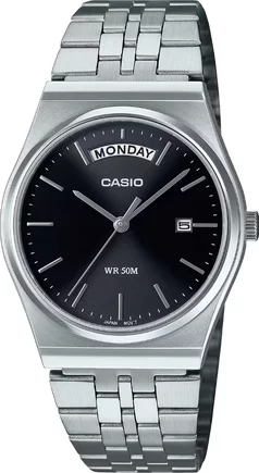 Часы Casio (Касио). Супер стильный унисекс трехстрелочник из серии CASIO CLASSIC в компактном и плоском стальном корпусе ретро стиля. Станет отличным выбором в качестве модели на каждый день. Модель выполнена в винтажном корпусе "плоской бочки", который получил всемирную популярность в конце 1970-х годов и имеет аутентичный браслет с мелкими звеньями дополняющий ретро-образ.