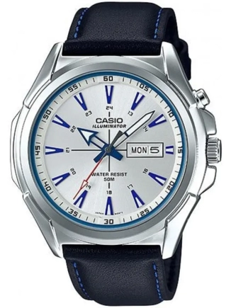 Часы Casio (Касио), круглый корпус. Эти часы созданы для мужчин, которые ценят комфорт и практичность. На данной модели отображается текущая дата и день недели. Стрелки покрыты люминесцентным напылением (светятся в темноте), светодиодная подсветка. Метки в виде штрихов. Ремешок из натуральной кожи. Классическая застежка из нержавеющей стали. Kорпус из нерж.стали. Стекло минеральное, устойчивое к повреждениям и царапинам. Водозащита 50WR.