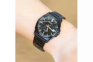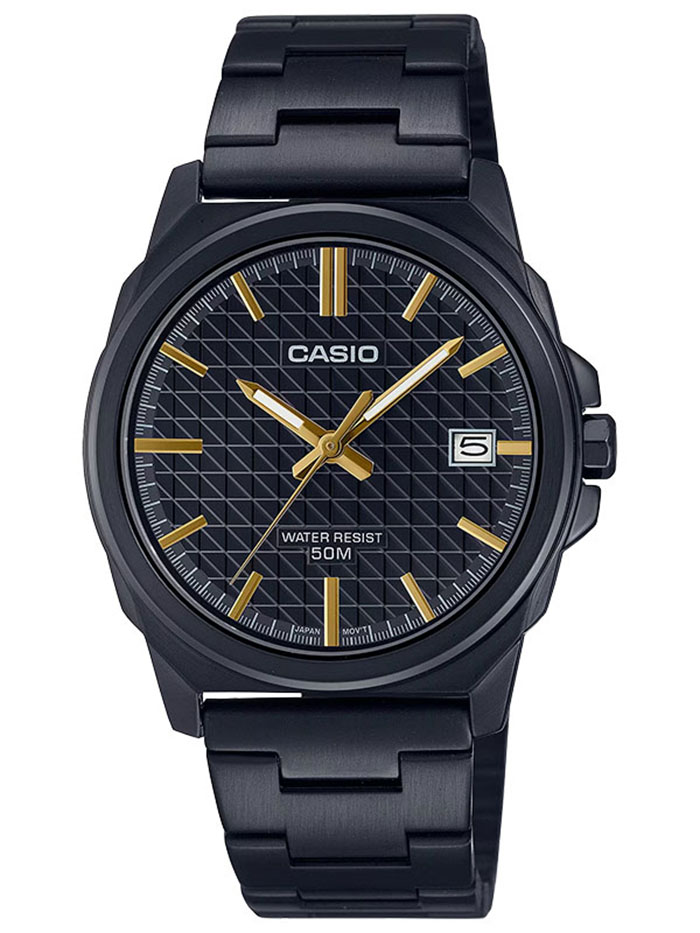 Часы Casio (Касио), круглый корпус. Эти часы созданы для мужчин, которые ценят комфорт и практичность. На данной модели отображается текущая дата. Метки в виде штрихов. Kорпус и браслет из нерж.стали. Браслет с тройной раскладывающейся застежкой, расстегиваемой одним касанием. Стекло минеральное, устойчивое к повреждениям и царапинам. Водозащита 50WR.