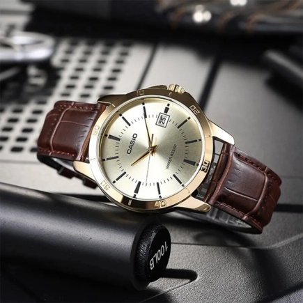 Часы Casio (Касио) классический характер, круглый корпус. Эти часы созданы для мужчин, которые ценят комфорт и практичность. На данной модели отображается текущая дата. Метки в виде штрихов и арабских цифр. Стекло минеральное, устойчивое к повреждениям и царапинам. Корпус из нерж.стали. Ремешок из натуральной кожи. Классическая застежка из нержавеющей стали. Водозащита WR.