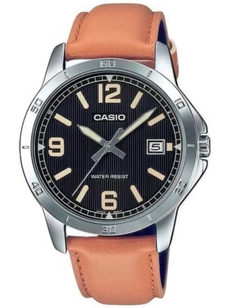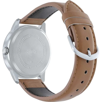Часы Casio (Касио) классический характер, круглый корпус. Эти часы созданы для мужчин, которые ценят комфорт и практичность. На данной модели отображается текущая дата. Метки в виде штрихов и арабских цифр. Стрелки покрыты люминесцентным напылением (светятся в темноте). Стекло минеральное, устойчивое к повреждениям и царапинам. Корпус из нерж.стали. Ремешок из натуральной кожи. Классическая застежка из нержавеющей стали. Водозащита WR.