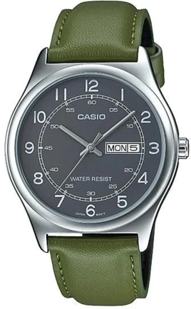 Часы Casio (Касио) классический характер, круглый корпус. Эти часы созданы для мужчин, которые ценят комфорт и практичность. На данной модели отображается текущая дата и день недели. Метки в виде арабских цифр. Стекло минеральное, устойчивое к повреждениям и царапинам. Корпус из нерж.стали. Ремешок из искусственной кожи. Водозащита WR.