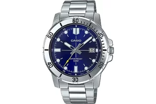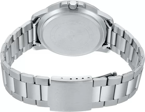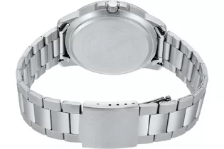 Часы Casio (Касио) практичные часы для стильных мужчин, которые ценят комфорт и практичность. На данной модели отображается текущая дата. Циферблат с метками в виде штрихов и точек. На стрелки и метки нанесен накапливающий свет флуоресцирующий материал, за счет которого обеспечивается свечение стрелок в темноте. Заводная головка с защитой. Корпус и браслет выполнен из нержавеющей стали. Стекло минеральное, устойчивое к повреждениям и царапинам. Браслет с тройной раскладывающейся застежкой, расстегиваемой одним касанием. Водозащита 50WR.