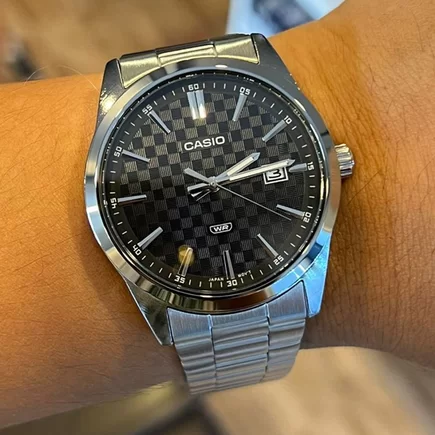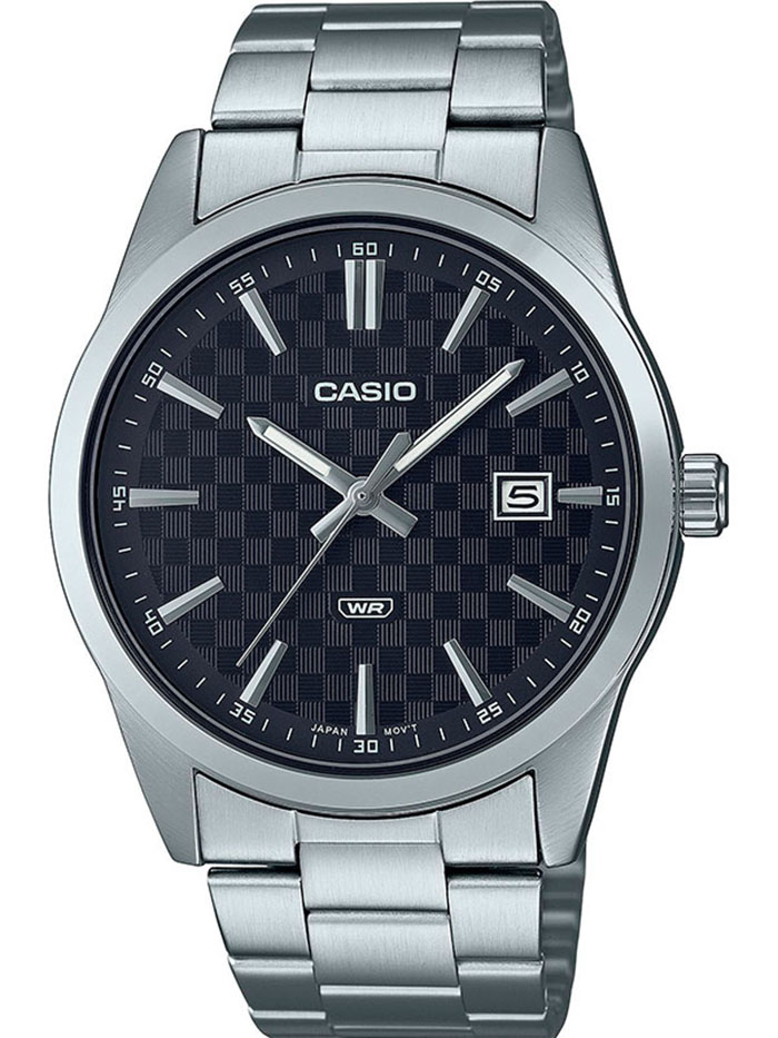 Часы Casio (Касио) практичные часы для стильных мужчин, которые ценят комфорт и практичность. Компактный циферблат выполнен в стиле шахматной доски. На данной модели отображается текущая дата. Циферблат с метками в виде штрихов. На стрелки нанесен накапливающий свет флуоресцирующий материал, за счет которого обеспечивается свечение стрелок в темноте. Корпус и браслет выполнен из нержавеющей стали. Стекло минеральное, устойчивое к повреждениям и царапинам. Браслет с тройной раскладывающейся застежкой, расстегиваемой одним касанием. Водозащита 30WR.