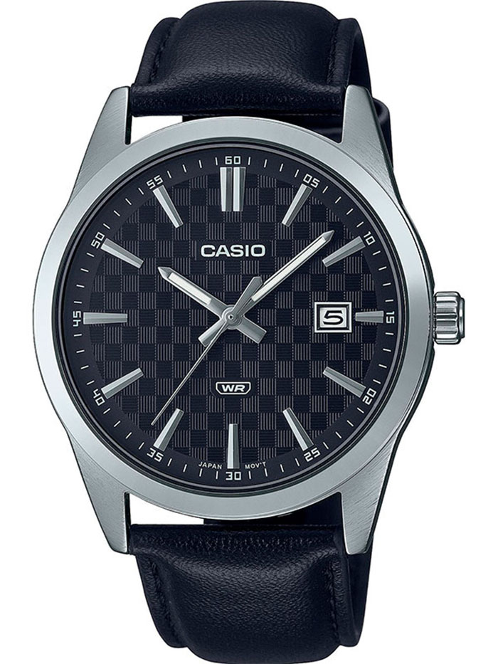 Часы Casio (Касио) практичные часы для стильных мужчин, которые ценят комфорт и практичность. Компактный циферблат выполнен в стиле шахматной доски. На данной модели отображается текущая дата. Циферблат с метками в виде штрихов. На стрелки нанесен накапливающий свет флуоресцирующий материал, за счет которого обеспечивается свечение стрелок в темноте. Корпус выполнен из нержавеющей стали. Стекло минеральное, устойчивое к повреждениям и царапинам. Ремешок из натуральной кожи. Классическая застежка из нержавеющей стали. Водозащита 30WR.