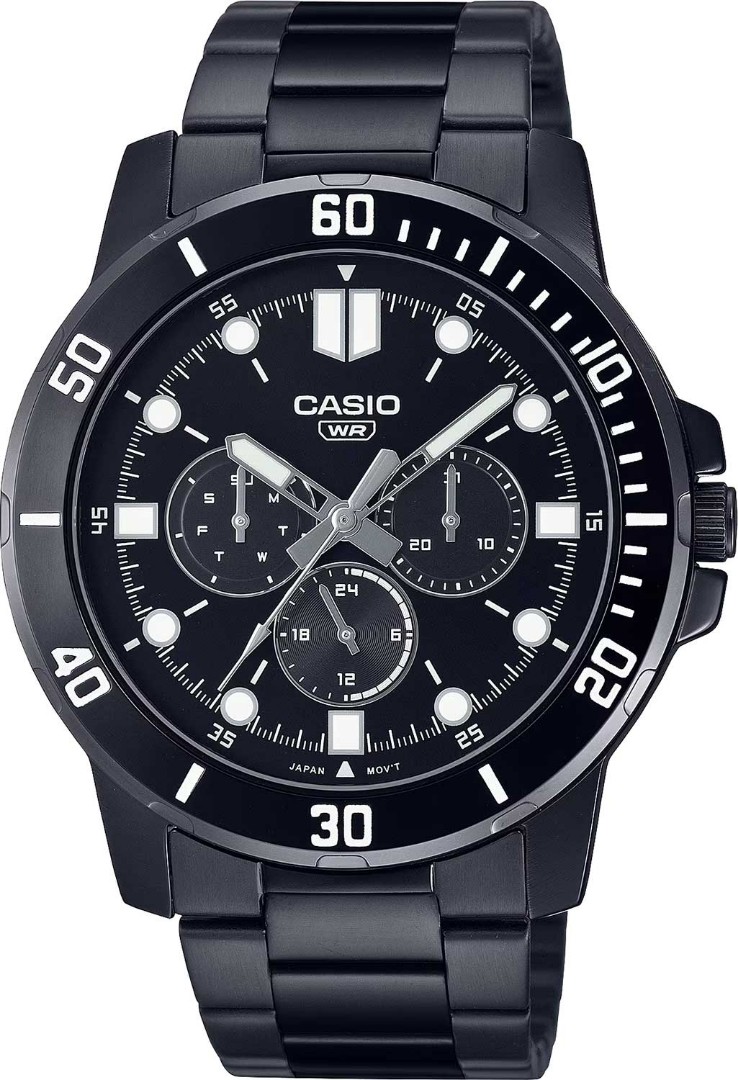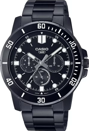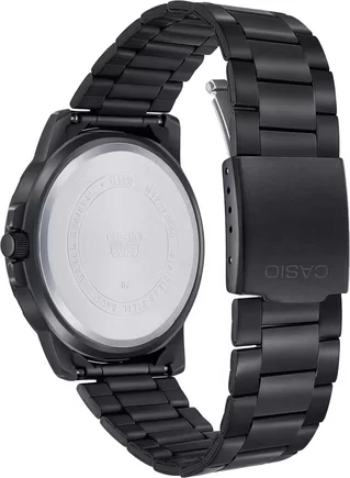 Часы Casio (Касио) практичные часы для стильных мужчин, которые ценят комфорт и практичность. 12-ти и 24-х часовой формат времени, число и день недели вынесены на отдельные циферблаты. Метки в виде точек. На стрелки и метки нанесен накапливающий свет флуоресцирующий материал, за счет которого обеспечивается свечение стрелок в темноте. Корпус и браслет выполнен из нержавеющей стали с IP-покрытием. Стекло минеральное, устойчивое к повреждениям и царапинам. Заводная головка с защитой. Браслет с тройной раскладывающейся застежкой, расстегиваемой одним касанием. Водозащита 30WR.