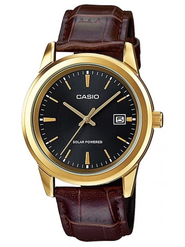 Часы Casio (Касио) практичные часы для стильных мужчин, которые ценят комфорт и практичность. На данной модели отображается текущая дата. Циферблат с метками в виде штрихов. В часах встроен солнечный аккумулятор, который подряжается от солнечной панели в циферблате. Даже если часы полностью разрядятся, достаточно поместить их на свет и подержать от 2 часов до нескольких суток, в зависимости от источника света, и они снова заработают. Стекло минеральное, устойчивое к повреждениям и царапинам. Корпус выполнен из нержавеющей стали с IP покрытием. Ремешок из натуральной кожи. Классическая застежка из нержавеющей стали. Водозащита 30WR.
