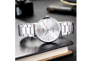 Часы Casio (Касио) практичные часы для стильных мужчин, которые ценят комфорт и практичность. Циферблат в виде штрихов и римских цифр. Стекло минеральное, устойчивое к повреждениям и царапинам. Корпус и браслет выполнен из нержавеющей стали. Браслет с тройной раскладывающейся застежкой, расстегиваемой одним касанием. Водозащита 30WR.